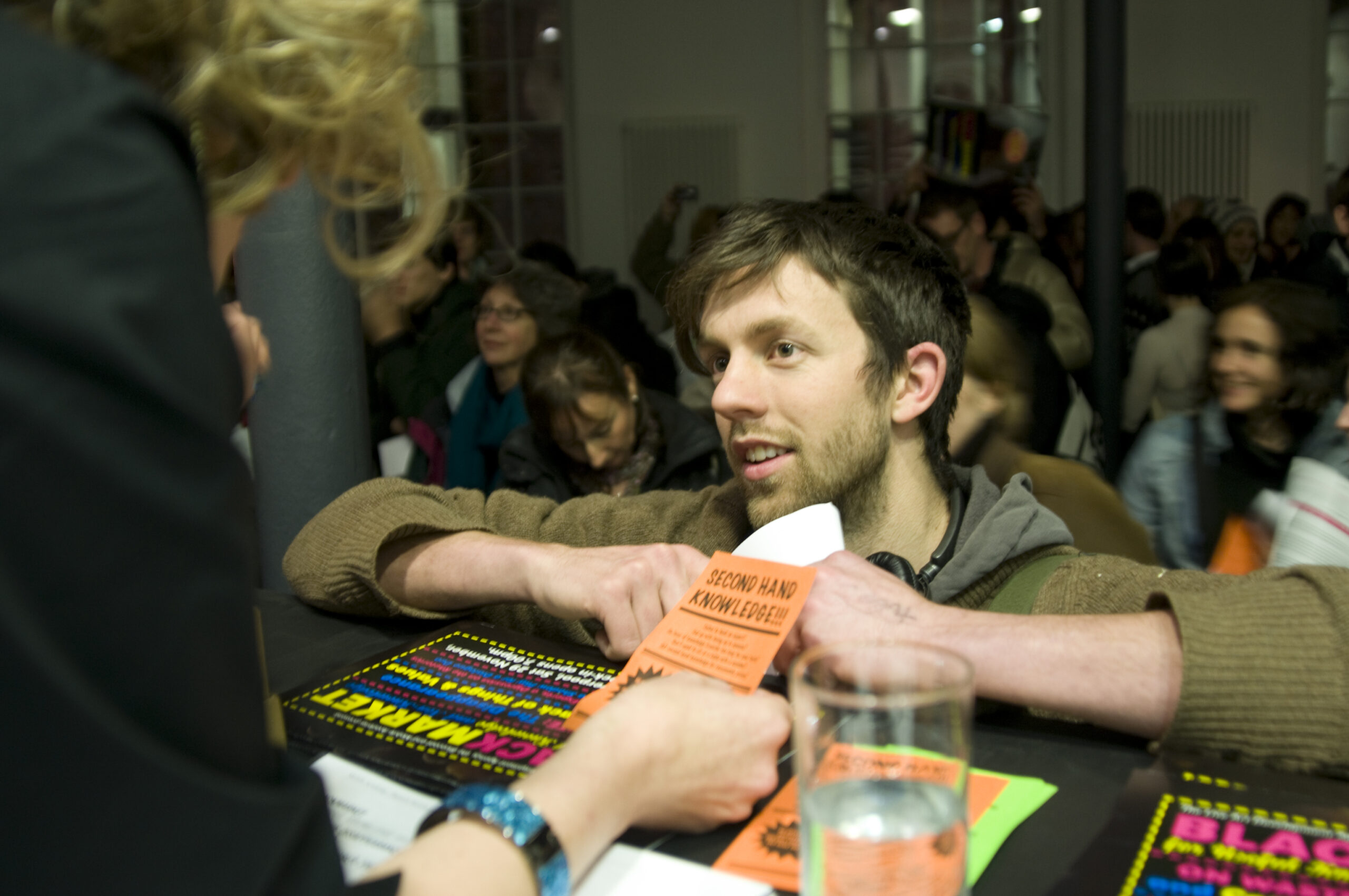 A Market For Useful Knowledge and Non-Knowledge is an interdisciplinary research inquiry that imitates familiar places of knowledge exchange like the archive or library reading room, and combines them with communication situations such as markets, stock exchanges, counselling or social service interviews. Each market presents a different topic, generating an encyclopaedia with local experts.